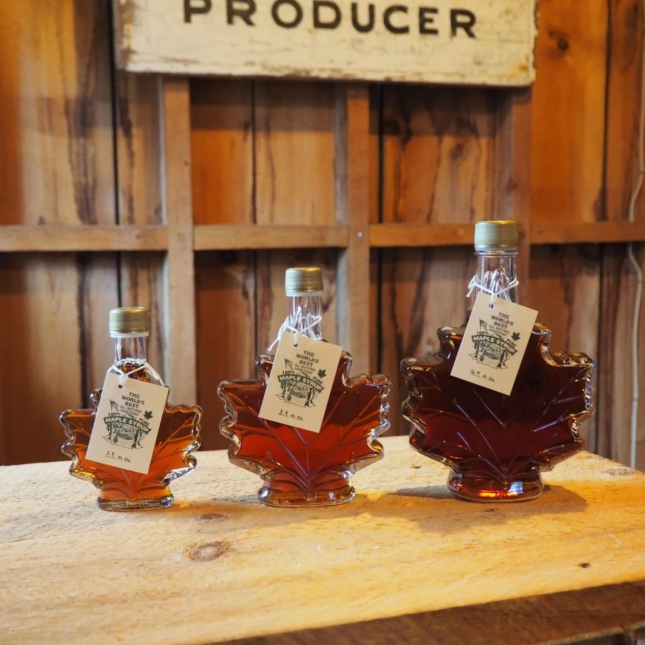 Shop Shop Categories: All Maple Syrup Merch All | Maple Syrup | Merch | Maple Syrup - Glass Bottle from $3.00 Maple Syrup - Glass Leaf Bottle from $8.00 Maple Syrup - Decorative Metal Can $24.00 Logo Sticker $2.00